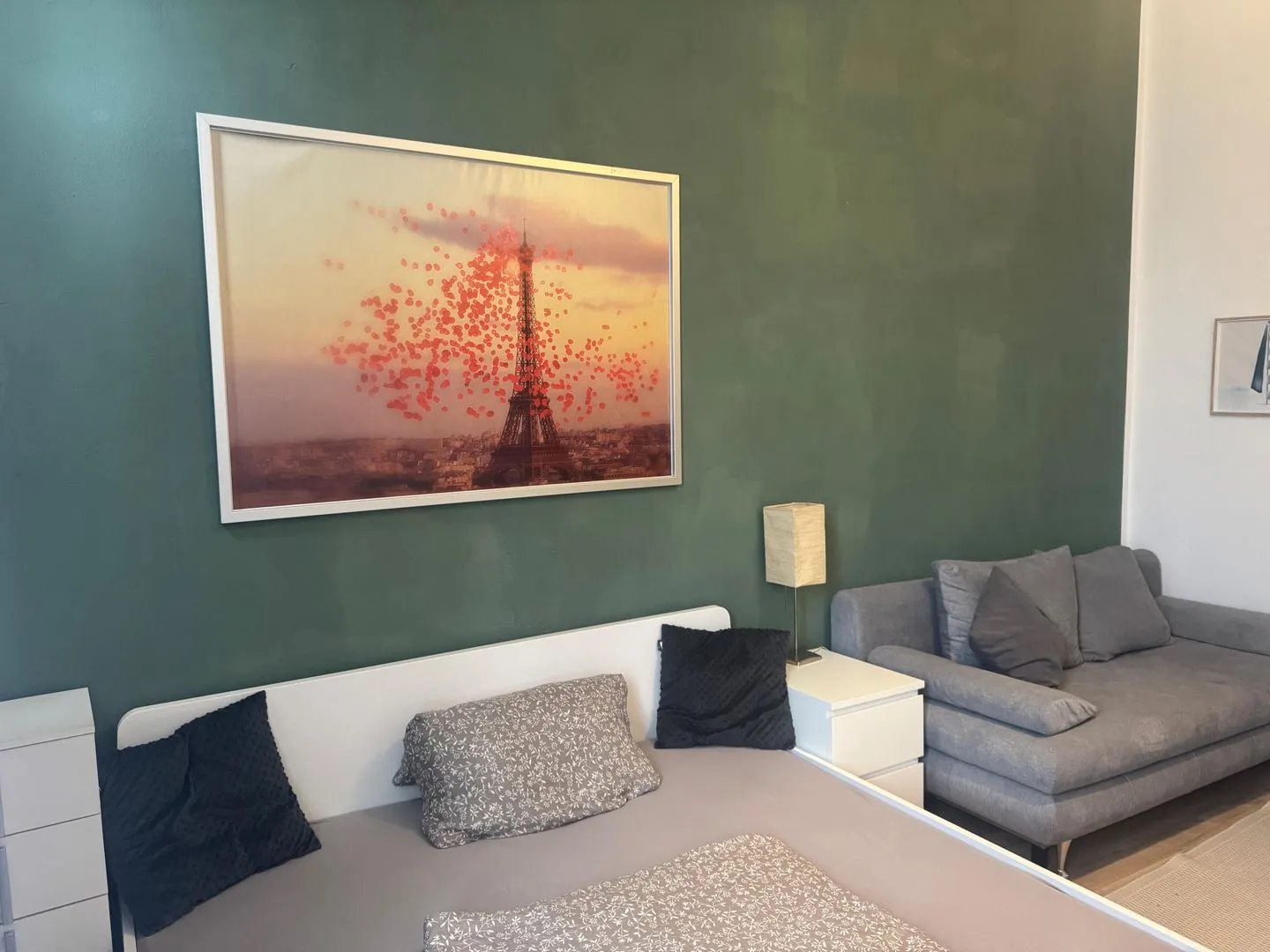 Die Wohnung besteht aus einem separaten Schlafzimmer mit Einzelbett sowie einem gemütlichen Wohnzimmer mit Sofaecke und einem großzügigen Doppelbett (180x200 cm). Damit eignet sich das Appartement sowohl für Paare als auch für kleine Familien oder Kollegen.
